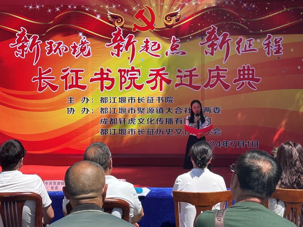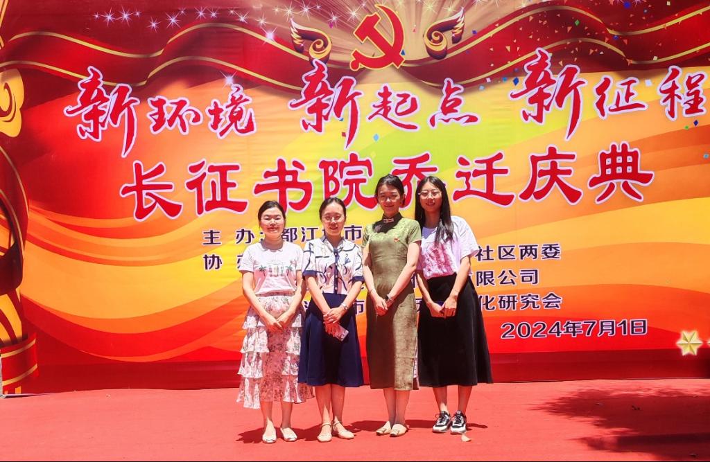 7月1日上午,都江堰市长征书院举办“新环境、新起点、新征程”乔迁庆典暨建党103周年庆祝活动,威廉williamhill体育经理蔡小丽、青年教师胡红玉、石佩颖及青年马克思主义发展研读社员工代表受邀参加。